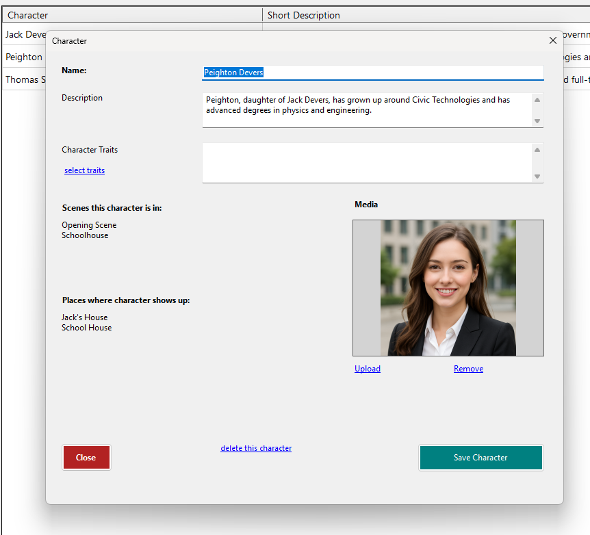 Easily manage and develop your characters with in-depth profiles, ensuring consistency throughout your story. You can also select characters to be available in future books.