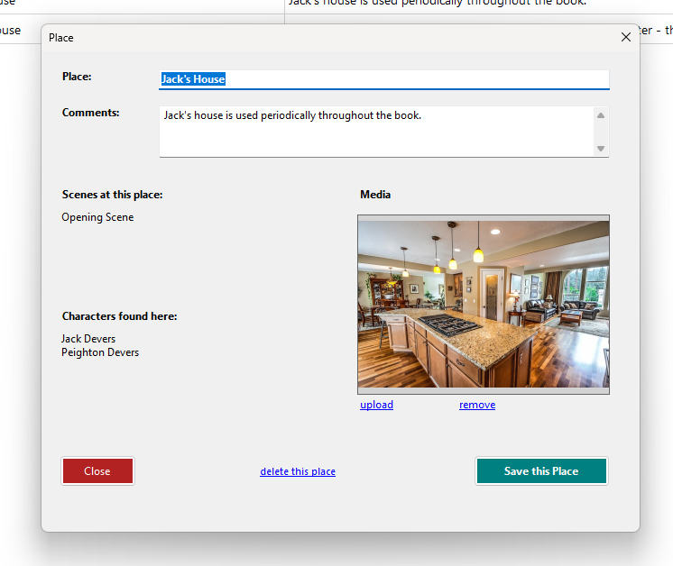 With Place management you can keep notes to help organize your scenes efficiently for better pacing and flow throughout your novel.